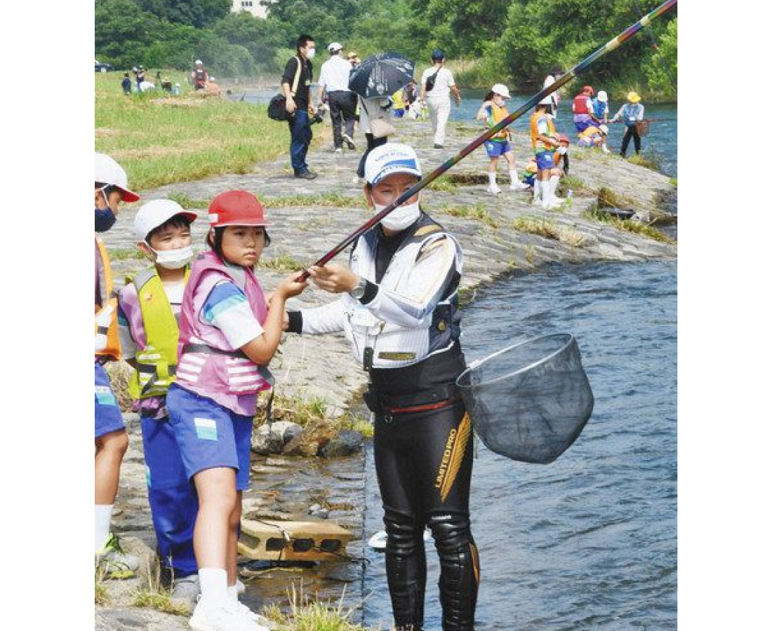 環境や地域学習の一環で、永平寺町志比小学校の四年生二十三人が四日、学校近くの永平寺河川公園周辺の九頭竜川でアユの友釣りに挑戦した。講師の釣り師にやり方を教わり、川岸では「釣れた!」という児童の喜びの声があちこちで響いた。