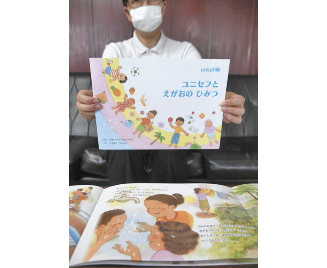 大野市が市民の寄付を受けて二〇一九年度まで取り組んだ東ティモールでの給水施設整備事業のエピソードが、日本ユニセフ協会が本年度発行した絵本「ユニセフとえがおのひみつ」に盛り込まれている。日本中の子どもたちに世界の子どもたちの現状や募金の意義を伝える教材として一役買っている。(山内道朗)