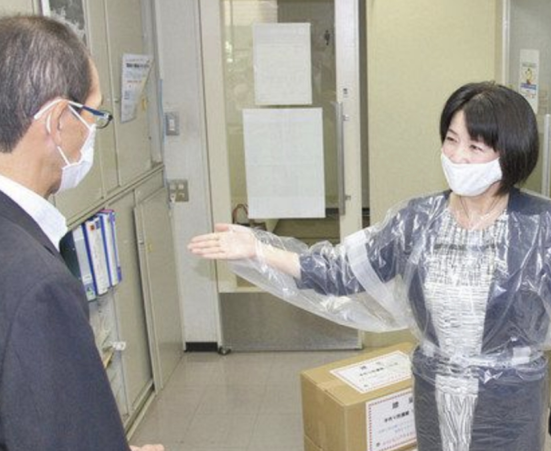 ふくいピュアライオンズクラブ(斎藤節子会長)は十九日、新型コロナウイルスと闘う医療従事者の支援に役立ててほしいと、ごみ袋を素材に会員が手作りした防護服二百着を県に寄贈した。